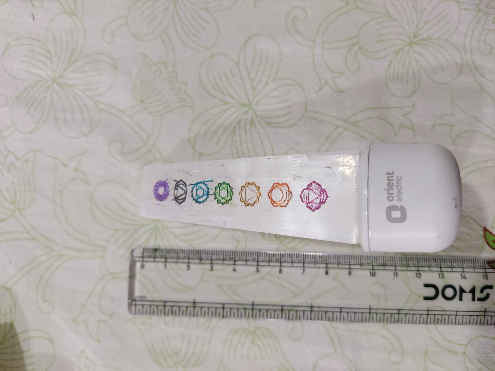 Bring home peace, balance, and healing energy with this stunning 7 Chakra Selenite Lamp — a unique blend of natural crystal and modern lighting. Hand-carved from pure selenite and engraved with the seven chakra symbols, this luminous lamp is fitted with a high-quality Orient Electric plug, making it ready to use right out of the box.