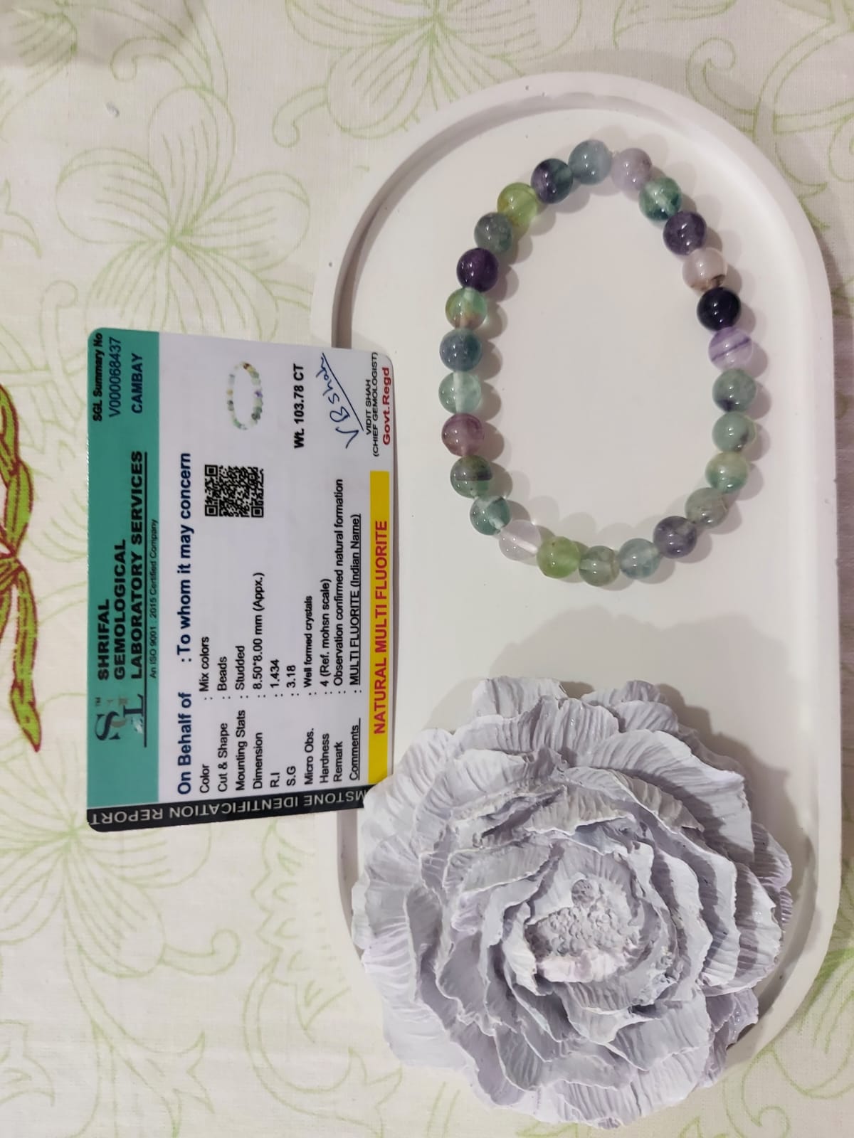 • Stone: Natural Multi Fluorite (certified)